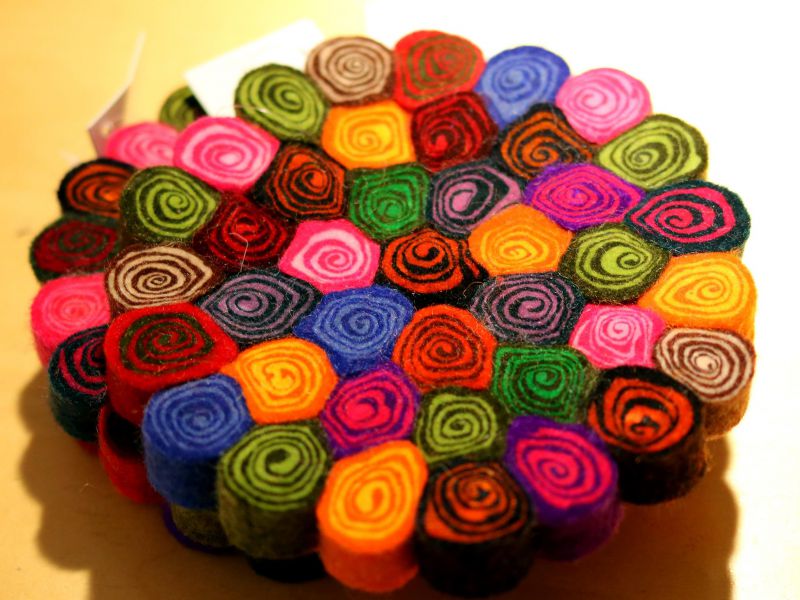 Produkte aus Papier zum Einpacken und Aufbewahren! Filzprodukte aus Nepal - zum Aufhängen oder zum Darauf-Sitzen!