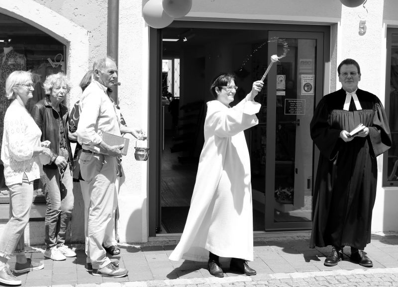 Fasziniert vom „sozialen Gespür in der Bürgerschaft“ seiner Stadt zeigte sich Oberbürgermeister Max Gotz anlässlich der Neueröffnung des Erdinger Weltladens in der Spiegelgasse am vergangenen Samstag (10.07.2021). Desto herzlicher waren seine Wünsche an die ca. 30 Mitglieder des ehrenamtlichen Ladenteams. Peter Libossek als Vorsitzender des Vereins Weltladen e.V. erinnerte daran: 250 Weltläden gibt es allein in Bayern. Sie alle widmen sich dem „fairen Handel“. Dessen Ziel ist es, Kleinproduzenten und Familienbetrieben in benachteiligten Regionen der Welt einen Marktzugang bei uns zu verschaffen und zwar zu fairen Bedingungen. Sie sollen ohne Kinderausbeutung und mit schonungsvollem Ressourcenverbrauch produzieren können und Preise erzielen, von denen sie eine Existenz für ihre Familien aufbauen können. Pfarrer Dr. Fritsch segnete zusammen mit Gemeindereferentin Ostermeier den Weltladen und das Team. Faire Mietverträge sowohl im Haus von Frau Gebel in der Maurermeistergasse als auch das Entgegenkommen von Familie Wille in der Spiegelgasse nannte Libossek ebenso hilfreich wie die finanziellen Beiträge von Sponsoren. Die Initiative aber lag hauptsächlich beim Verein selbst. Viele aus dem Verkaufsteam beteiligten sich an der Planung und dem Umzug, während die Einrichtung des neuen Ladens in vielen Arbeitsstunden vom Vorstand und von Vereinsmitgliedern in vorbildlicher Eigenregie durchgeführt wurde.